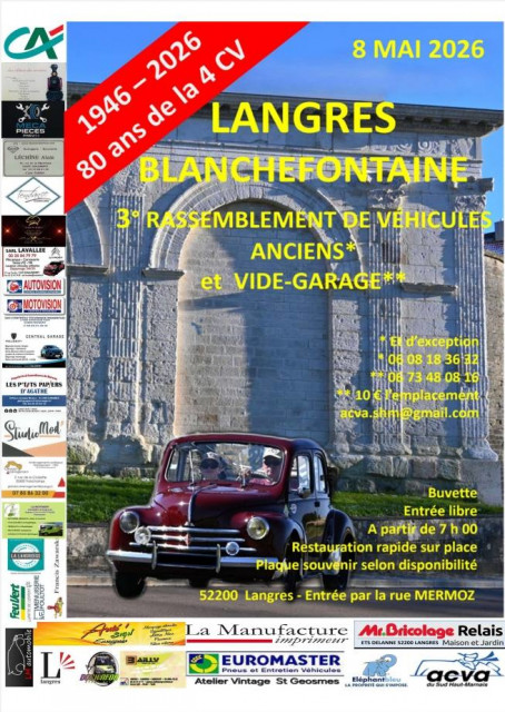 Il s'agit d'une balade découverte à l'aide d'un road-book. Café d'accueil, plaque rallye, déjeuner du midi assuré. Les participants peuvent loger à l'hôtel tout proche du point de départ.(Ibis Budget à Langres) Le président est engagé dans cet événement*, si d'autres veulent participer, manifestez vous ! Post Forum : ICI